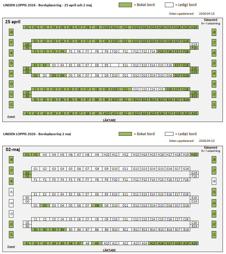 När vi mottagit och registrerat din betalning så är ditt bord bokat. Därefter skickas ett bekräftelsemejl till dig med mer information inför loppisdagen. Om ditt önskade bord redan är bokat placerar vid dig så nära som möjligt.